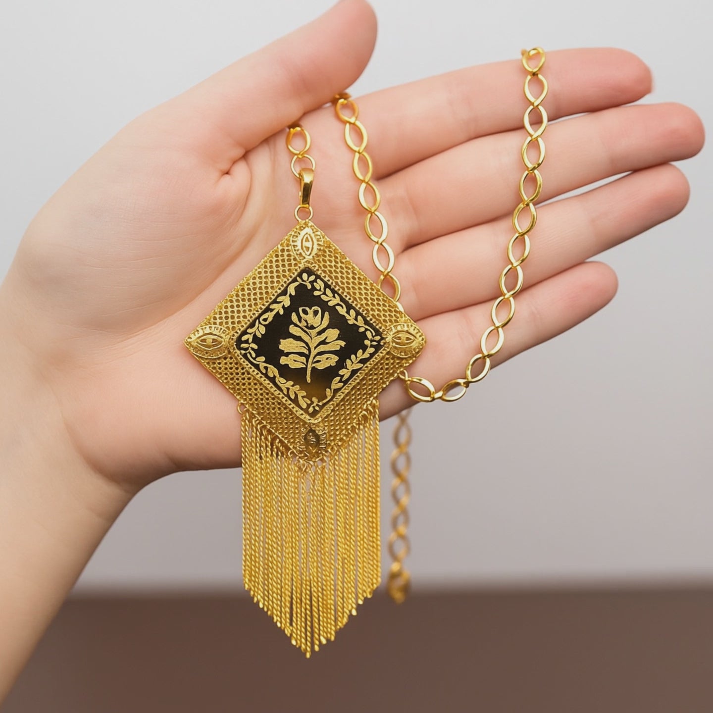 Luxury gold color pendant necklace for women – elegant floral tassel design, perfect for weddings, parties & special gifts.